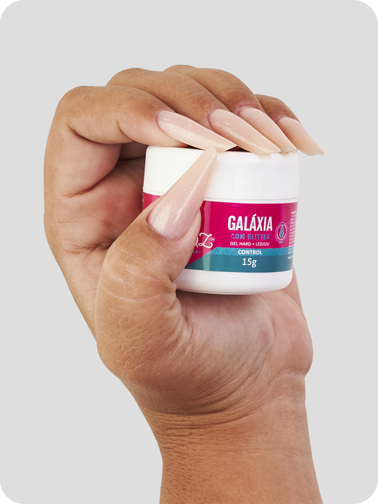 gel hard hqz nails é um gel com secagem ultra rápida (autonivelante ou control) que garante maior rigidez após a cura, podendo ser usado desde a construção da unha até a última camada com curvatura.